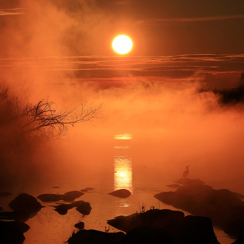 下田和利「太陽柱昇り巻積雲の朝焼け」